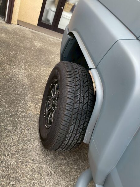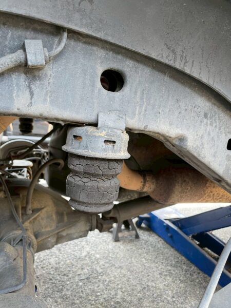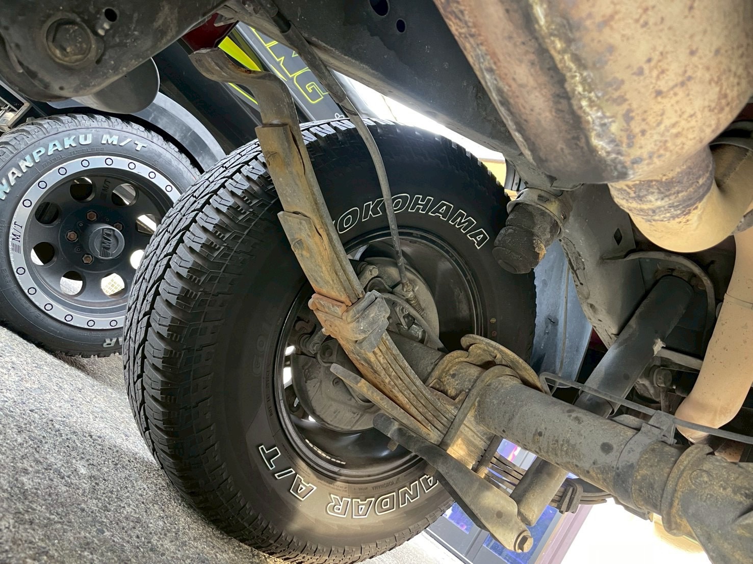 車体が傾いた不動の状態から、リーフスプリング周り一式の交換を行い、無事に本来のタフな走りを取り戻しました。