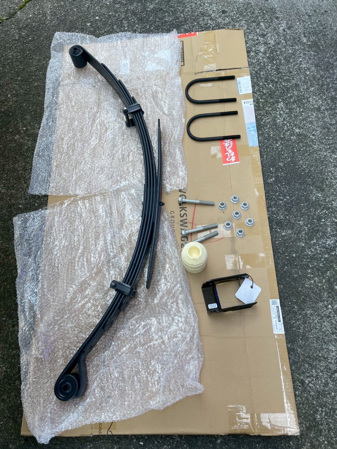 ハマーH3は年式やグレードによってパーツの適合が細かいため、間違いのないよう本国データと照らし合わせながら手配します。今回は長く安心してお乗りいただくため、耐久性の高い新品のリーフスプリングを左右セットで用意しました。